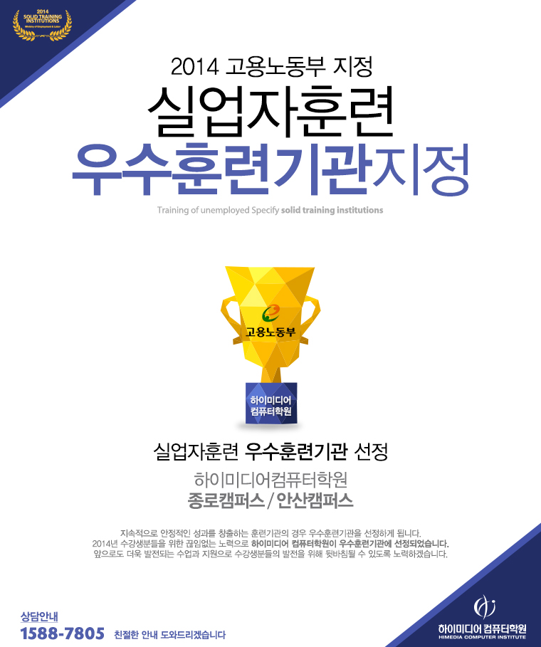 [공지] 2014 고용노동부 지정 우수훈련기관 하이미디어컴퓨터학원