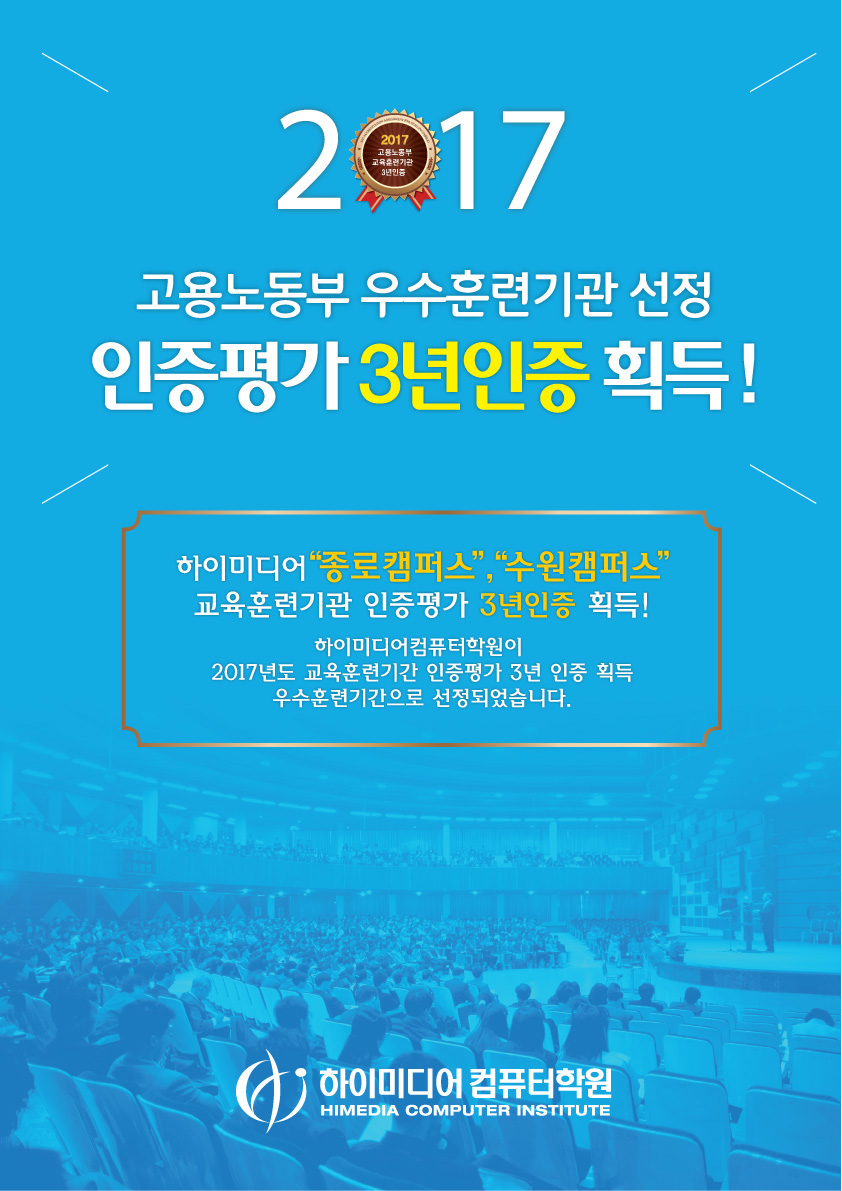 [본사]2017년 고용노동부 우수훈련기관 선정 3년인증 획득!