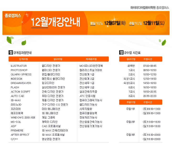 [정규개강] 2010년12월 종로캠퍼스 정규개강안내