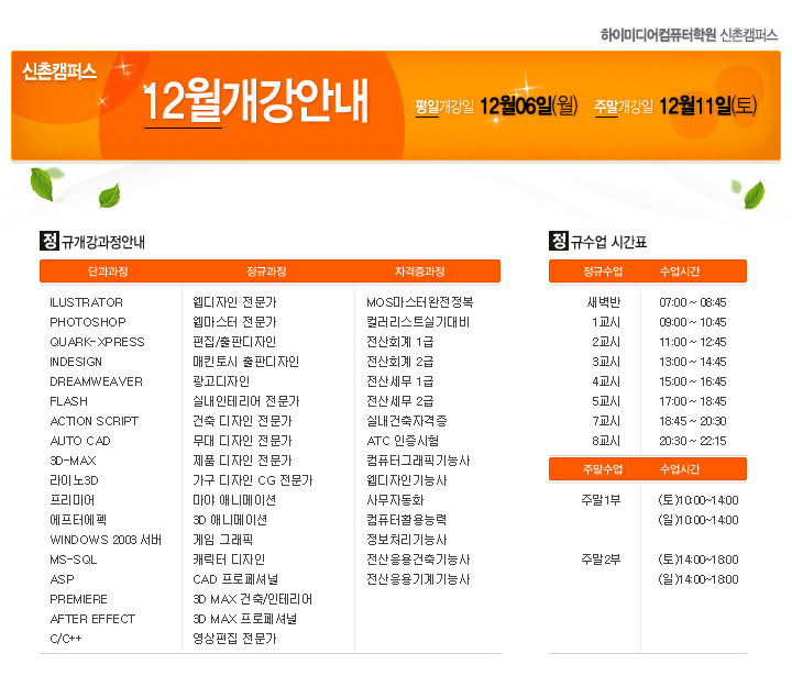 [정규개강] 2010년12월 신촌캠퍼스 정규개강안내