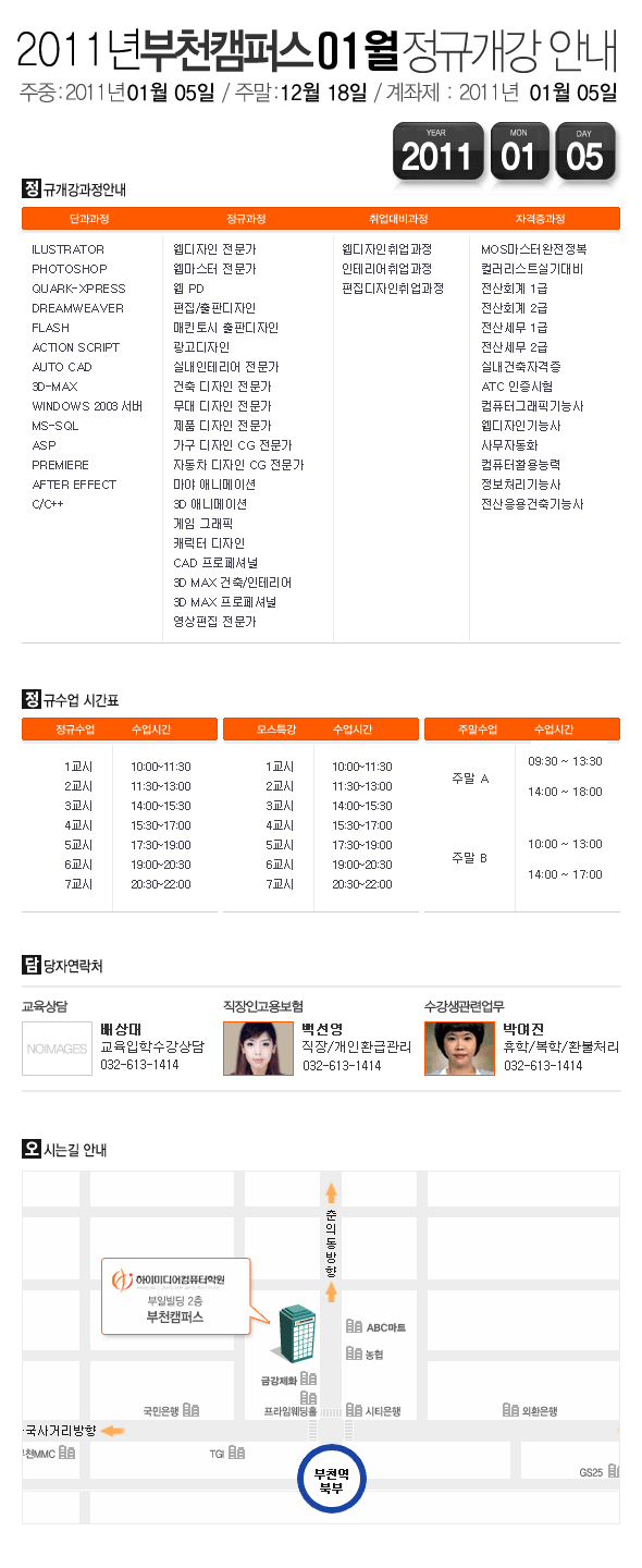 [정규개강] 2011년 01월 부천캠퍼스 개강안내