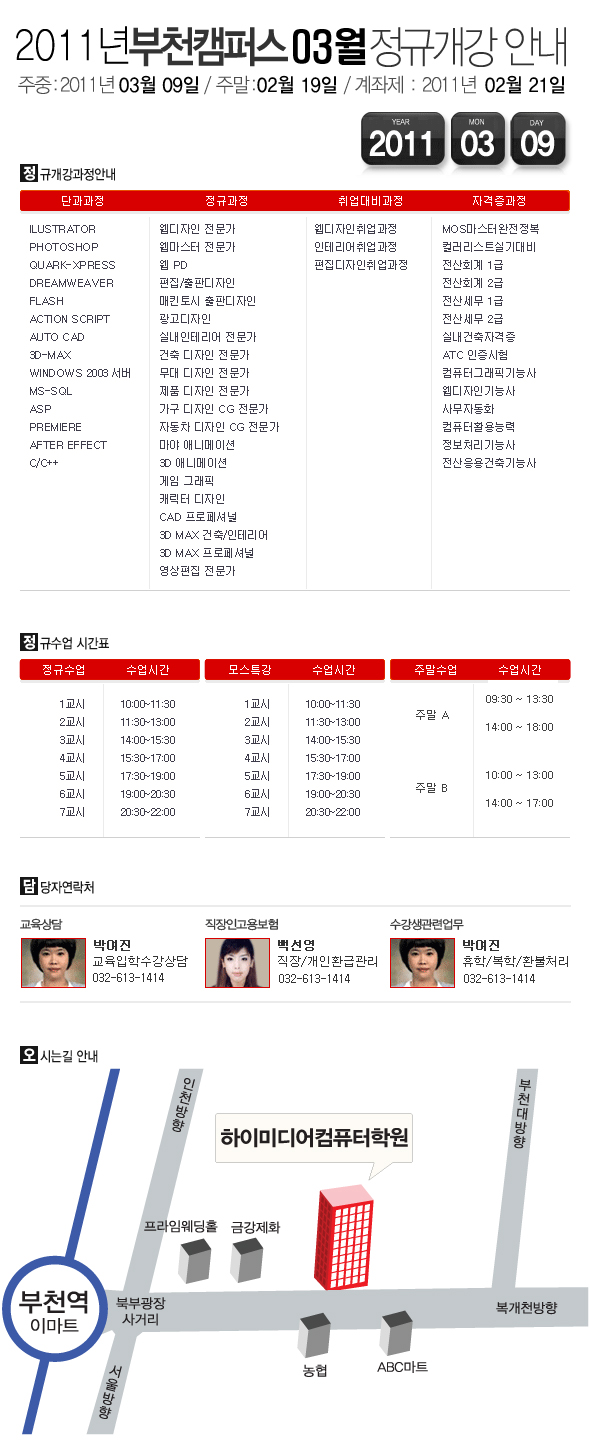 [정규개강] 2011년 03월 부천캠퍼스 개강안내