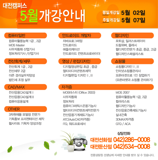 [정규개강]대전캠퍼스 5월 정규개강안내