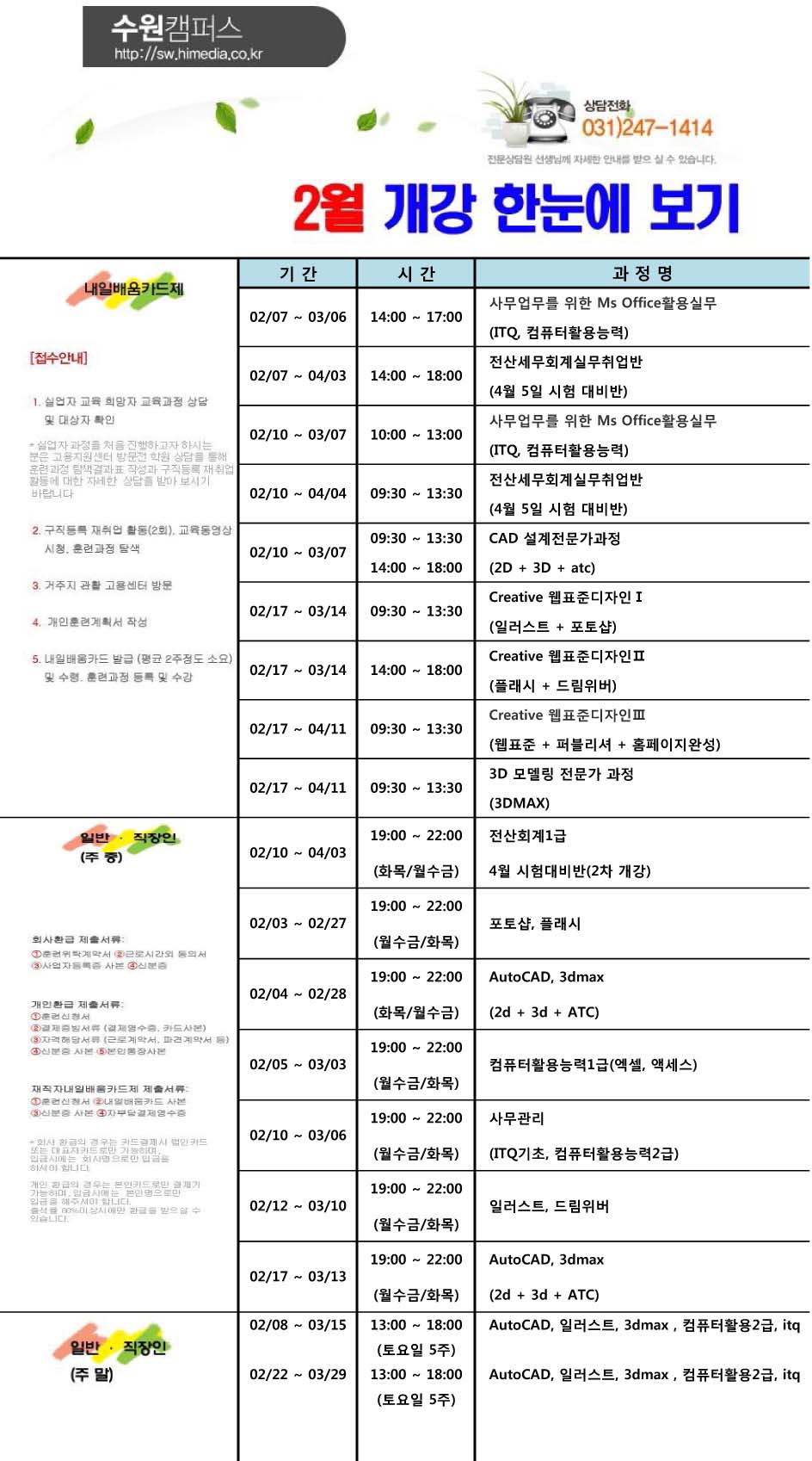 2월 개강 한눈에 보기